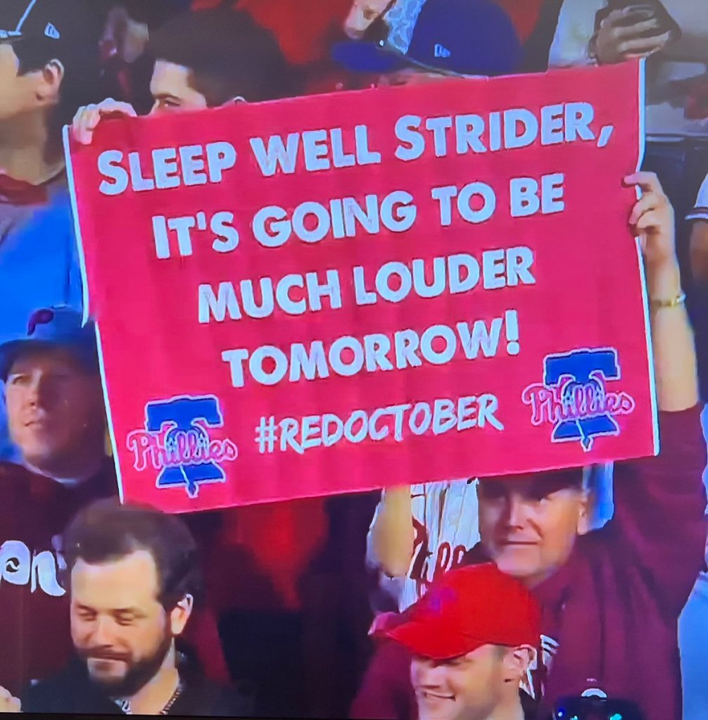 It’s only up from here, Phillies fans! As for you Braves, I wouldn’t be too worried about Arcia’s comment, but rather the heat that will be placed on Spencer Strider tonight. Let me close this article on a picture captured by Teddy Bailey on X.
